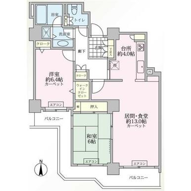 | 間取り(内訳) | 2LDK(和6洋6.4LDK17) | ||